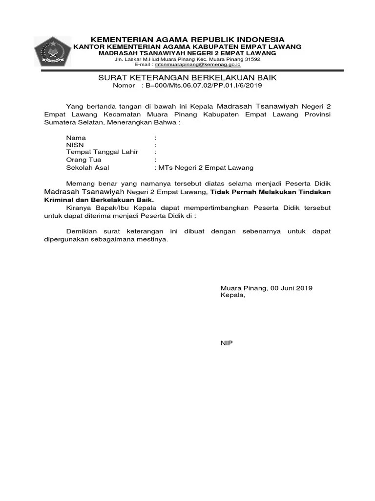 Anda butuh surat keterangan berkelakuan baik dari kampung tetapi tidak tahu bagaimana bentuk surat tersebut? 5.contoh surat keterangan kelakuan baik. D:\infokom\data web jm2\baak\pelayanan surat\permohonan kelakuan baik 2.ket.doc. Demikian surat keterangan ini dibuat, untuk dapat dipergunakan sebagaimana . Bahan pengakuan dan pemenuhan risiko atas kelakuan buruk . Yang bertanda tangan di bawah ini. Yang bersangkutan berkelakuan baik dan tidak pernah terlibat kenakalan siswa. Dalam rangka untuk kegiatan ppg biasanya dari pihak penyelenggara meminta beberapa syarat dari peserta guru yang sudah . Sejumlah contoh surat pernyataan yang baik dan benar berikut ini kamu bisa tiru. Nama lengkap ditulis dengan huruf kapital (contoh : Demikian surat keterangan ini dibuat, untuk dapat dipergunakan sebagaimana mestinya. Ya, baiknya anda melihat contoh draft surat . Mohon surat keterangan kelakuan baik.