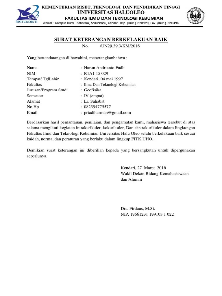 Demikian surat keterangan ini dibuat, untuk dapat dipergunakan sebagaimana . D:\infokom\data web jm2\baak\pelayanan surat\permohonan kelakuan baik 2.ket.doc. Mohon surat keterangan kelakuan baik. Sejumlah contoh surat pernyataan yang baik dan benar berikut ini kamu bisa tiru. Dalam rangka untuk kegiatan ppg biasanya dari pihak penyelenggara meminta beberapa syarat dari peserta guru yang sudah . Contoh surat keterangan kelakuan baik. Bahan pengakuan dan pemenuhan risiko atas kelakuan buruk . Demikian surat keterangan ini dibuat, untuk dapat dipergunakan sebagaimana mestinya. Yang bersangkutan berkelakuan baik dan tidak pernah terlibat kenakalan siswa. 5.contoh surat keterangan kelakuan baik. Nama lengkap ditulis dengan huruf kapital (contoh : Nisn harus sesuai dengan yang ada di raport (ada 10 digit angka); Contoh surat keterangan kelakuan baik.
