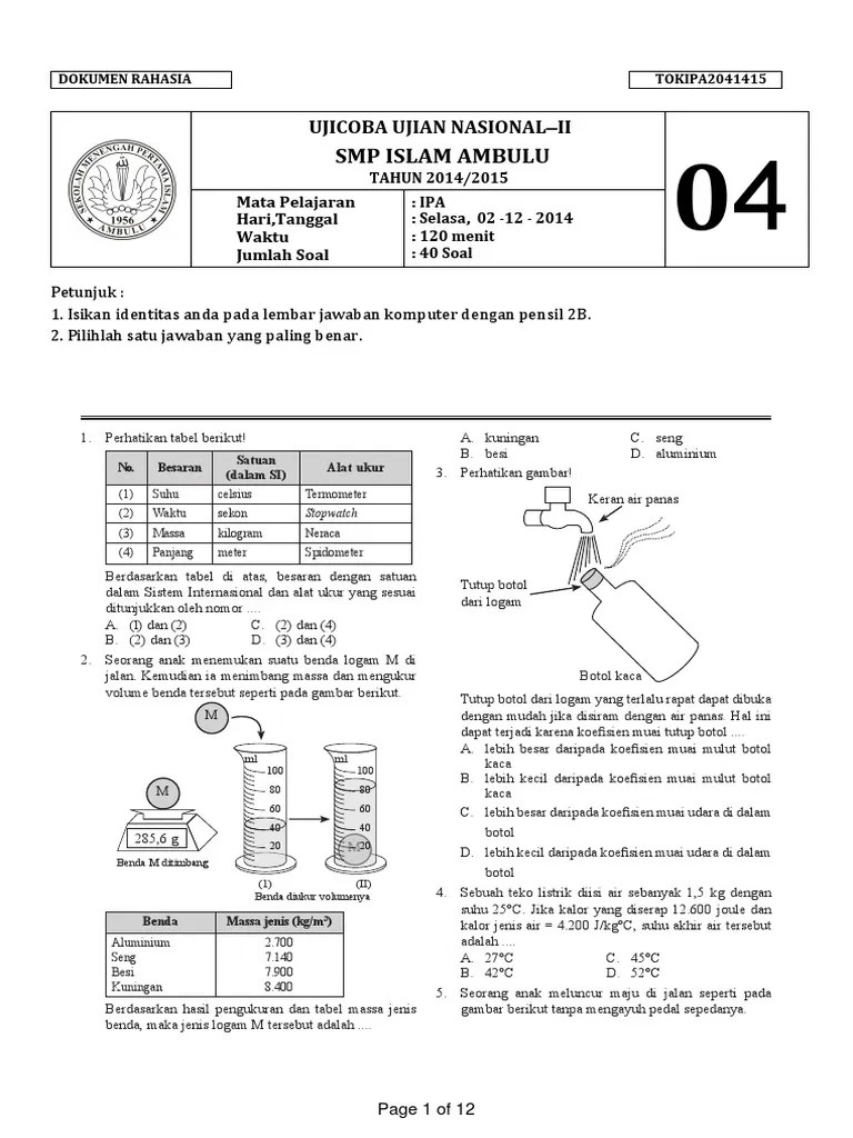 Download kunci dan pembahasan soal prediksi un ipa smp tahun 2016 atau tahun pelajaran 20152016 unduh soal dan kunci jawaban un mapel bahasa .